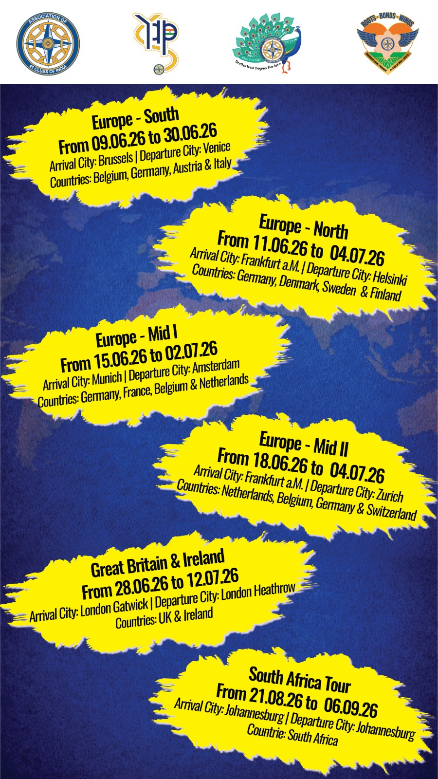 Europe Mid-II TourFrankfurt a.M.ZurichNetherlands, Belgium, Denmark & switzerland18.06.26 to 04.06.26